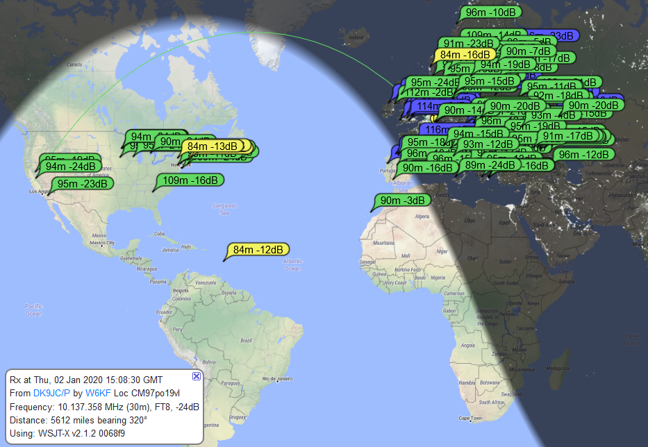 On 40m I was heard well, also in England. But after 15 minutes there was only one station in the log: S57ILF. In SSB my log would probably have been well filled already. On 30m it was better then. At least 5 stations came into the log. Because it was very cold I skipped 20m and called a few times on 17m. K1KZ came into the log. I was very happy about that. The antenna was just a wire, 7,90m long on my 10m mast. The z817 tuner matched it quite well. I didn't like the bulky tuner anyway. I just wanted to change the bands quickly with it, but with my resonant antennas I don't need very long to change them, too. Next time I leave it at home. Overall I was very satisfied with the test today. Here are my QSOs with 5W in around 50 minutes:
