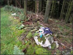 Kurioserweise habe ich fast direkt neben dem Blickenstein eine offizielle Höhenmarke gefunden. Diese wurde aber einfach an einem Schild angebracht und eben nicht im Gestrüpp am höchsten Punkt. Die TOP50 Karte des Landes Rheinland-Pfalz weist die Womrather Höhe mit 597m aus. Dieses Schild jedoch steht an einem Punkt mit 586m. Das Schild könnte noch in der Aktivierungszone sein, während der Blickenstein ja ein eigener Berg ist und von diesem Ort daher nicht im Rahmen von SOTA gefunkt werden sollte. Auch bei DM/RP-197 habe ich den steilen Anstieg gewählt, ein Weg war ca. 3km weit. Parken kann man bei 49.844081, 7.466546, nahe dem Forsthaus Lützelsoon zwischen Kellenbach und Hennweiler.